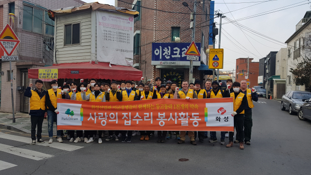 화성산업(대표이사 이홍중) 화성자원봉사단이 지난 23일 대구시 남구 이천동 두 세대를 방문해 도배와 장판, 싱크대 및 조명기구 교체, 외부 도색 등 집수리 봉사 활동을 펼치며 사랑을 나눴다.