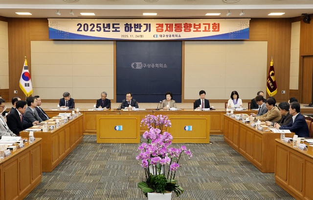 한편, 대구상공회의소는 24일 오후 ‘2025년도 하반기 경제동향보고회’를 열고 지역 경제 현황과 활성화 방안을 논의했다. 보고회에는 박윤경 대구상의 회장을 비롯해 홍성주 대구시 경제부시장, 민주원 대구지방국세청장, 윤경자 대구지방조달청장 등 기업지원 기관장과 협회·조합 단체장, 기업 대표 등 100여 명이 참석했다.
