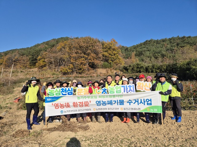 농협 울진군지부는 최근 울진군 온정면 광품리 일대에서 지역 농협 임직원과 (사)농가주부모임 울진군연합회(회장 전경숙) 회원 등 30여 명이 참여한 가운데 폐비닐 수거 봉사활동을 실시했다.
